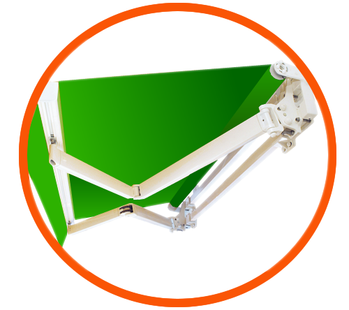 Ideal para grandes longitudes, tanto de salida de brazos como de línea total del toldo, con posibilidad de instalación de brazos intermedios.